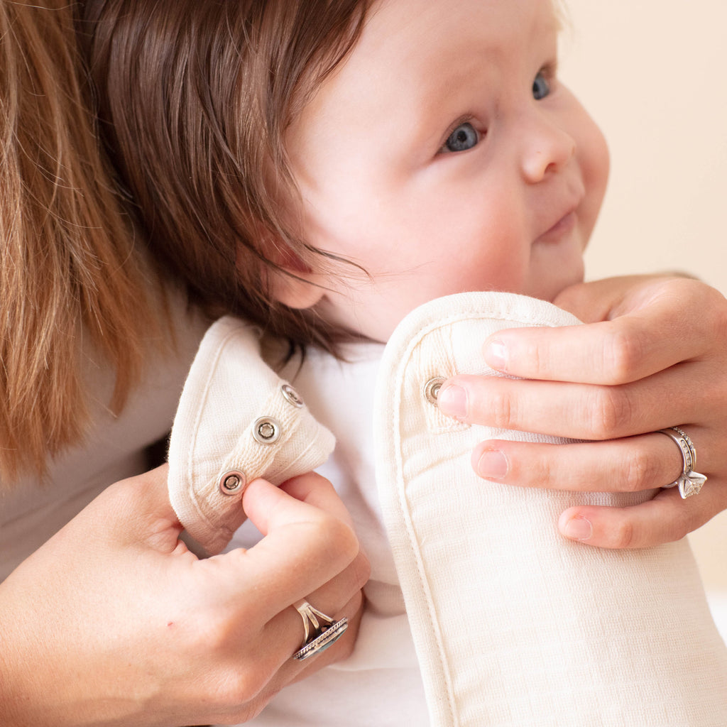 Breathable, versatile and silky soft, our natural cotton muslin bibs are perfect for taking care of your baby's delicate skin and devious messes.